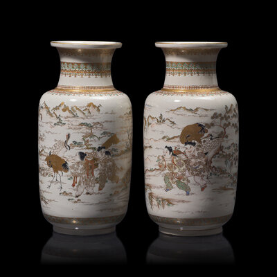 A Pair of Japanese Satsuma Type Vases, Early Meiji Period