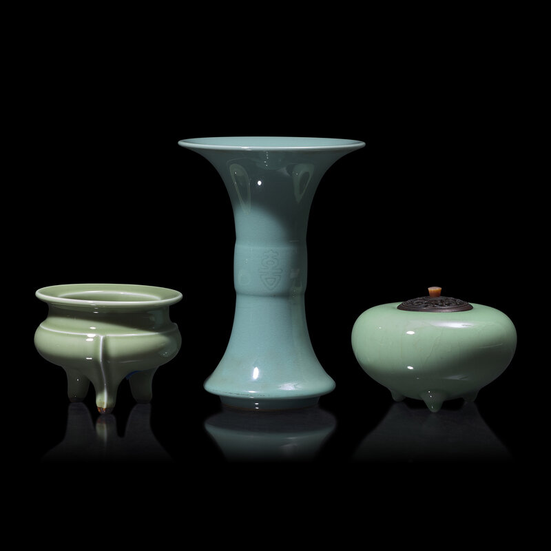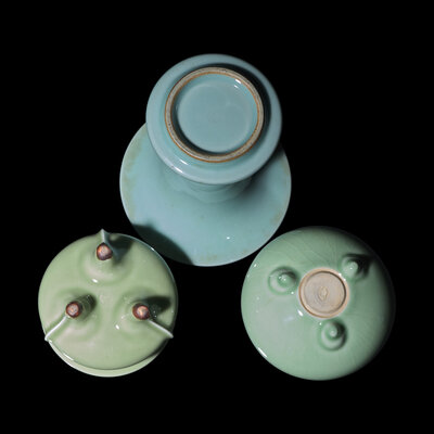 Three Japanese Celadon Glazed Porcelain Studio Porcelain Articles