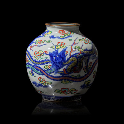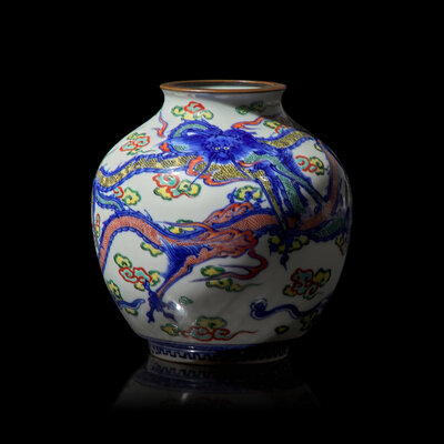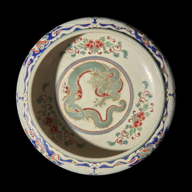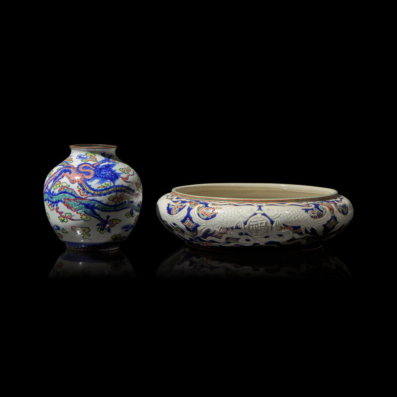 A Wucai-Decorated Vase and a 'Dragon' Bulb Dish, Makuzu Kozan