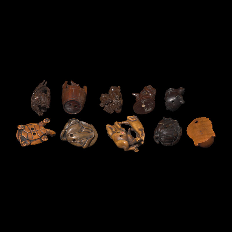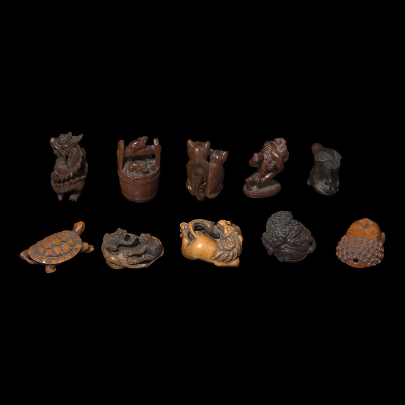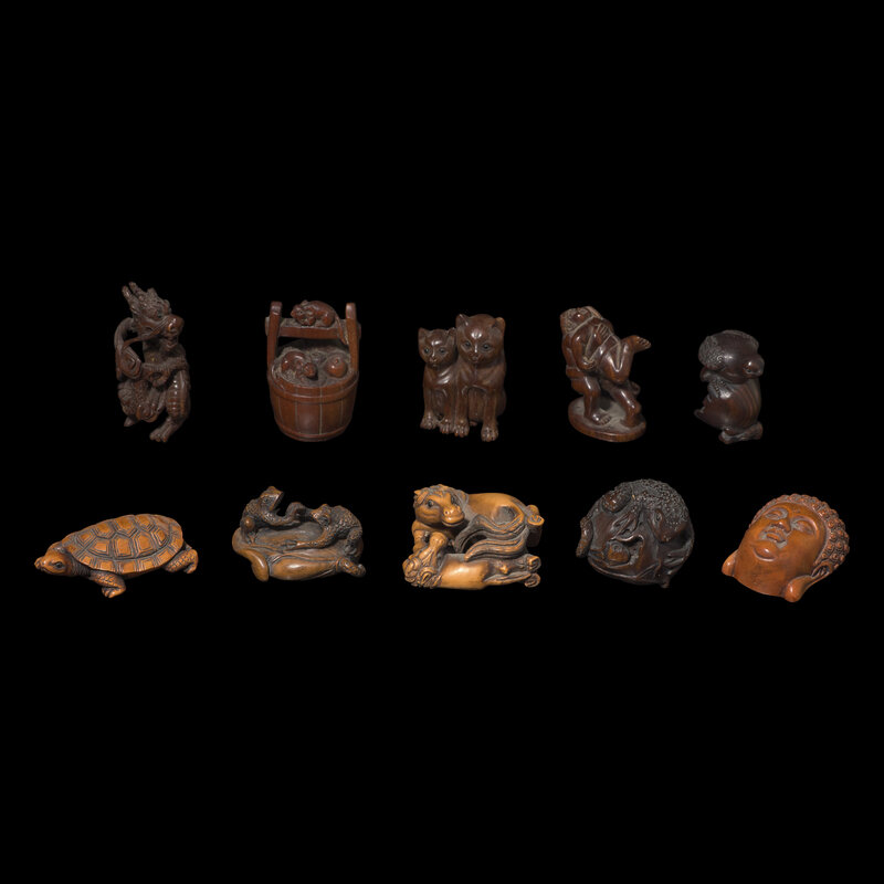 The group comprising animals, mythological creatures, a Buddha's head, and figures.
