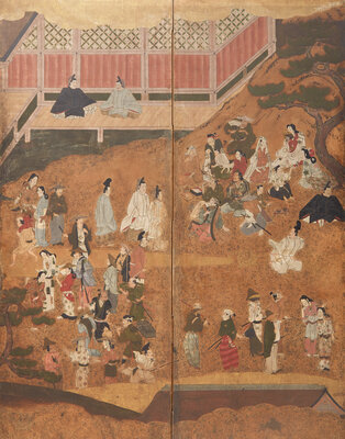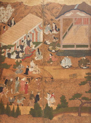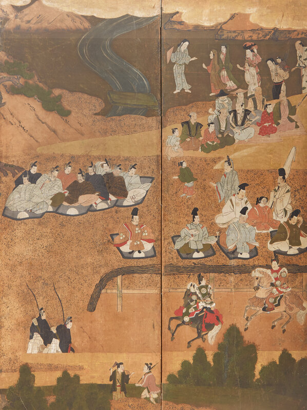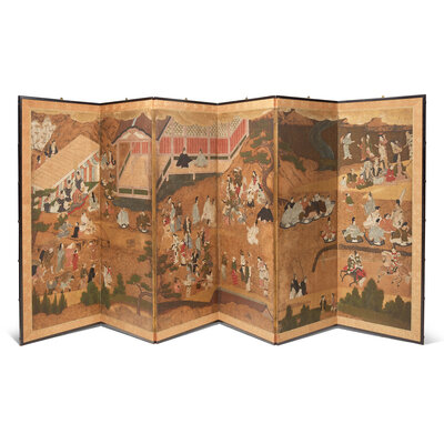 A Japanese Six-Panel Figural Floor Screen, Tosa School, 17th/18th Century
