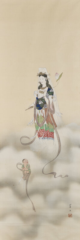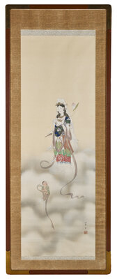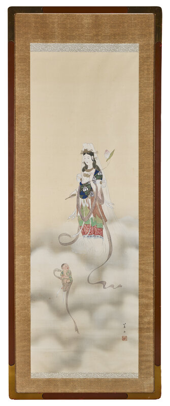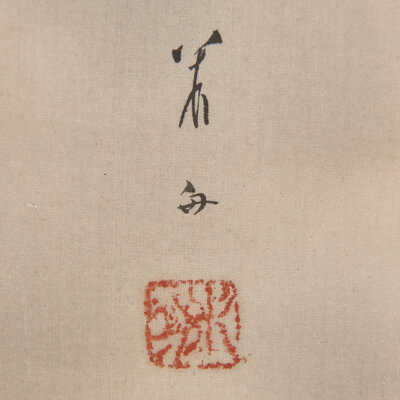 Ink and color on silk, signed, one artist's seal, mounted, framed, and glazed.