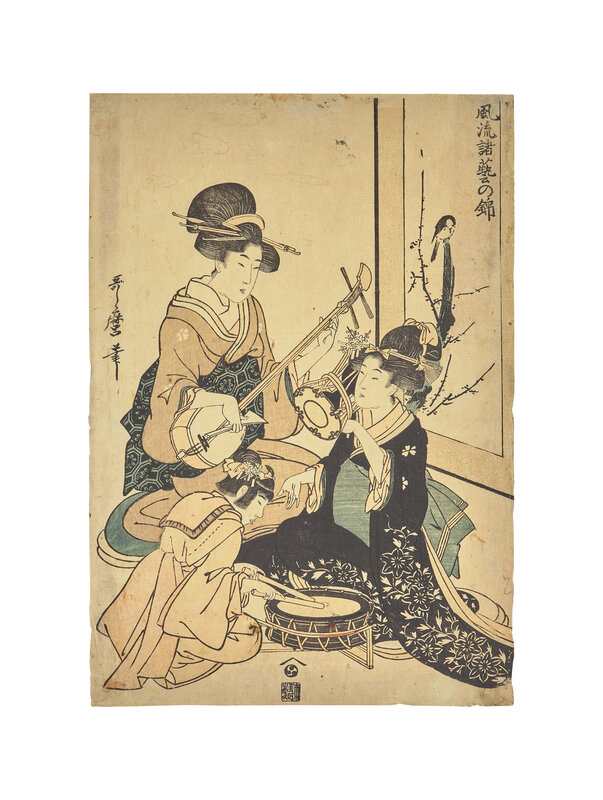 -Three Musicians, from Furyu Shogei no Nishiki (Elegant Brocade Pictures for the Arts), circa 1800, Sheet: 13 x 9 in. 32.8 x 22.8 cm.