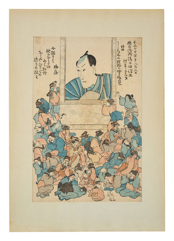 -Mourners weeping before a portrait of a deceased actor, sheet: 14 3/4 x 10 in., 37.5 x 25.10 cm.