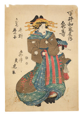 -Utagawa Sadatora, A Courtesan with a Kamuro, sheet 13 3/8 x 9 1/4 in.