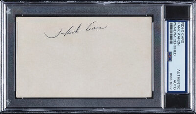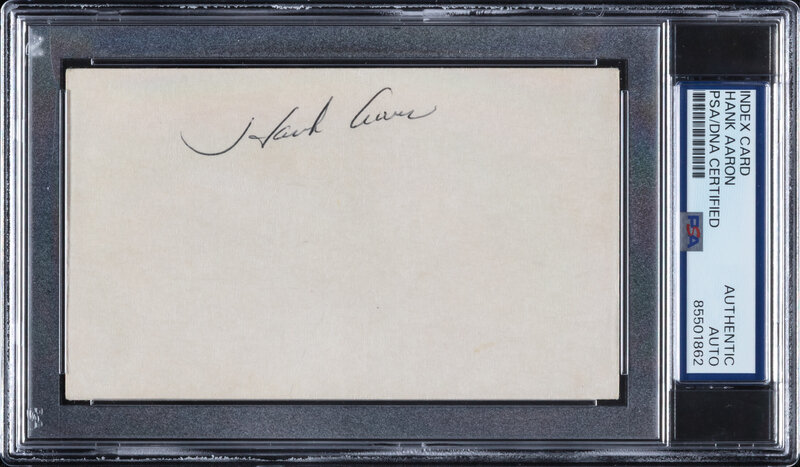 A Hank Aaron Vintage Signed Autograph Index Card (PSA Encapsulated)