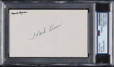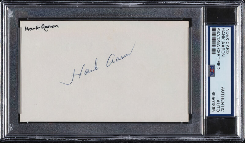 A Hank Aaron Vintage Signed Autograph Index Card (PSA Encapsulated)