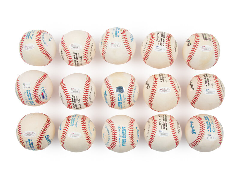 A Collection of 15 500 Home Run Club Member Single Signed Autograph Baseballs (JSA)