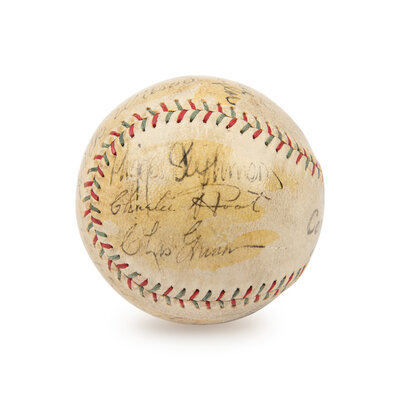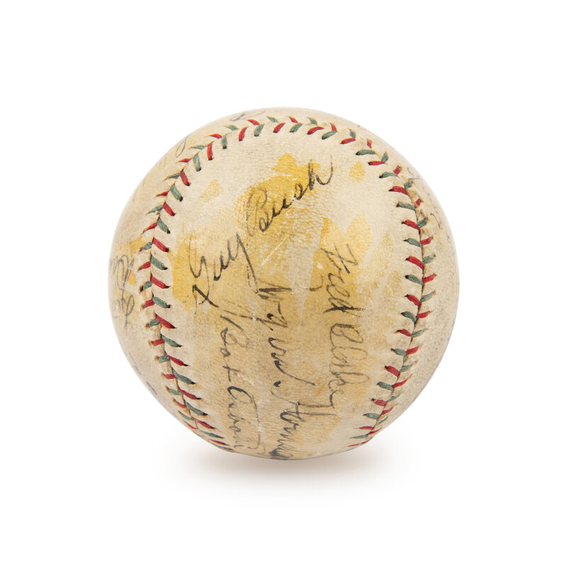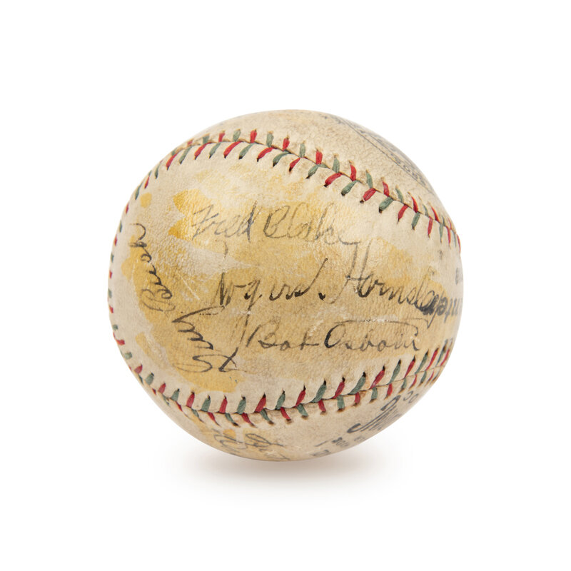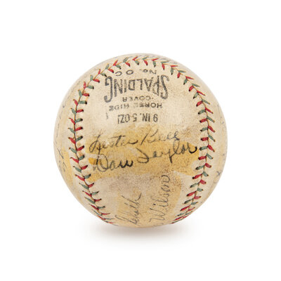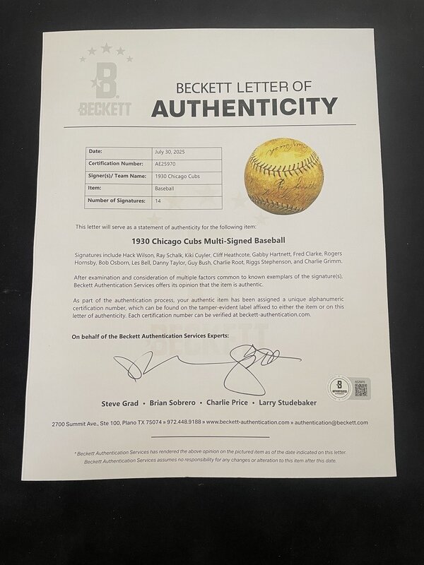 comprising signatures of Hack Wilson, Ray Schalk, Kiki Cuyler, Cliff Heathcote, Gabby Hartnett, Fred Clarke, Rogers Hornsby, Bob Osborn, Les Bell Danny Taylor, Guy Bush, Charlie Root, Riggs Stephenson and Charlie Grimm.