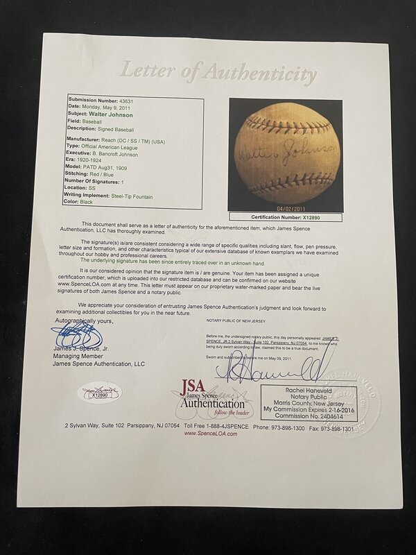 A Walter Johnson Signed Autograph Baseball - Traced (JSA Letter)