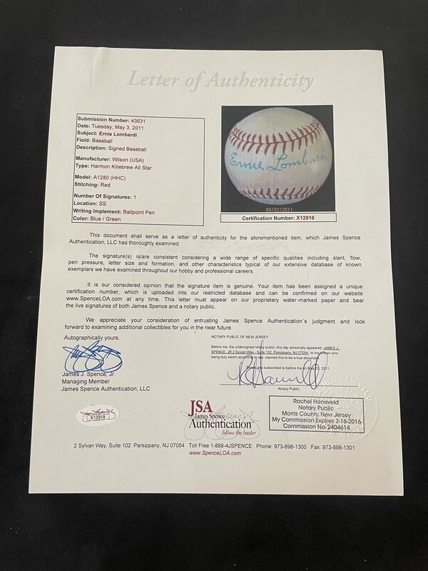 An Ernie Lombardi Single Signed Autograph Baseball (JSA Letter)