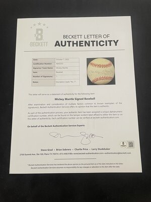 A Mickey Mantle No. 7 Inscribed Single Signed Autograph Baseball (Beckett Authentication Services Letter)