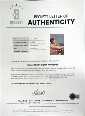 A Mickey Mantle Signed Autograph Photo (Beckett Authentication Services)