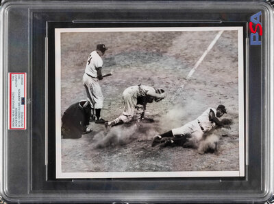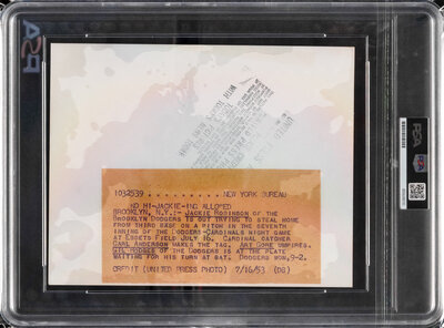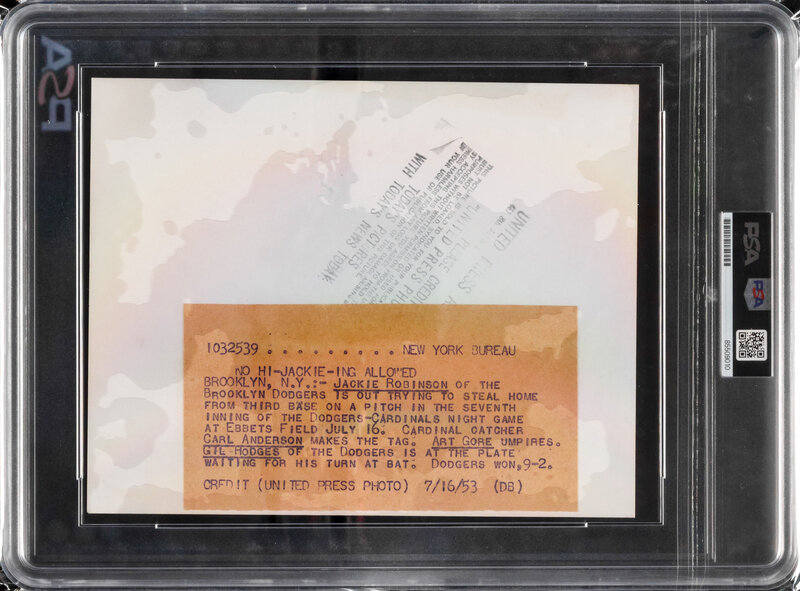 An Original 1953 Jackie Robinson Out At Home Type One United Press News Photograph (PSA)