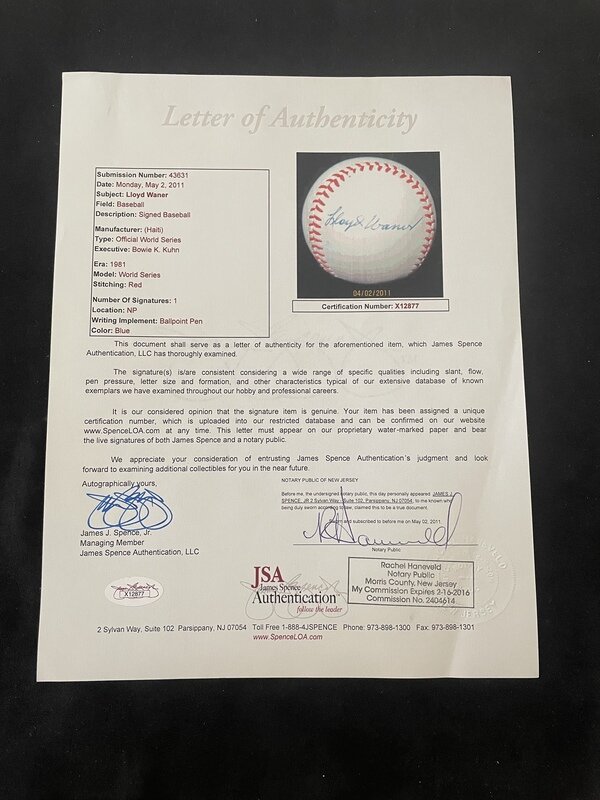 A Lloyd Waner Single Signed Autograph Baseball (JSA Letter)