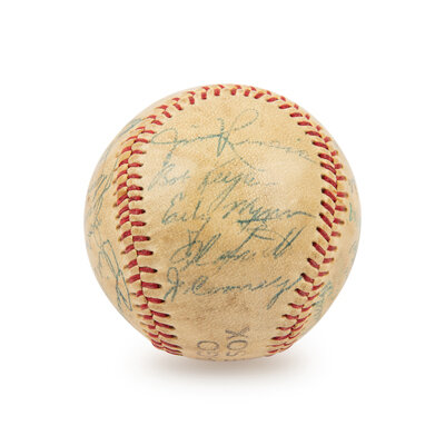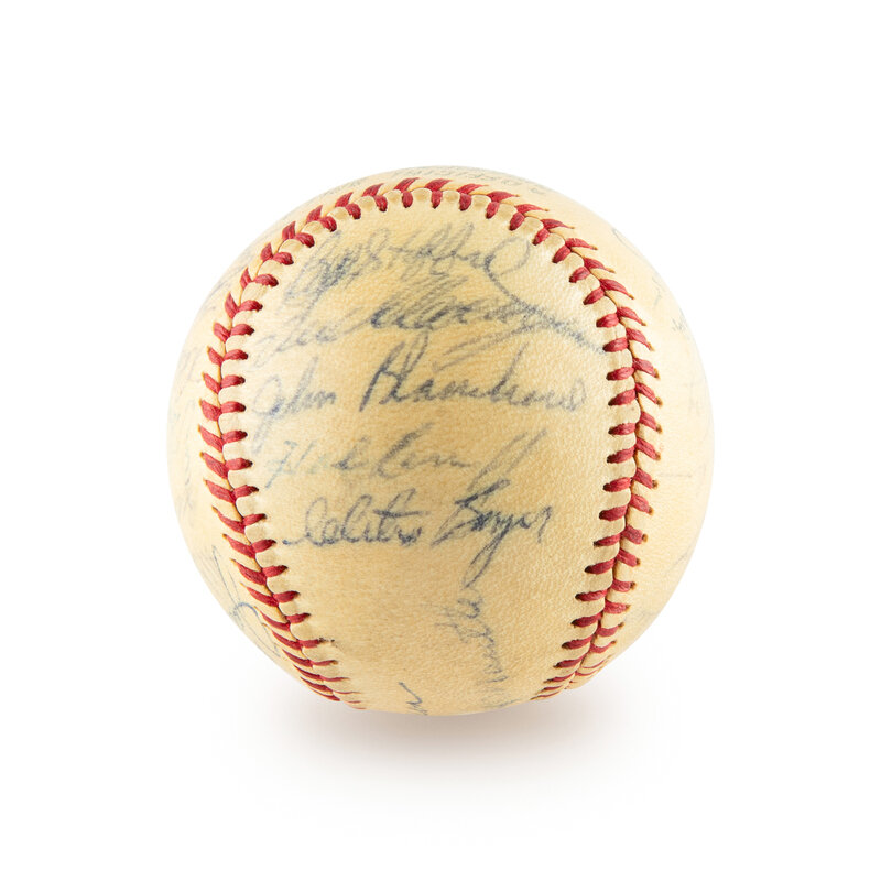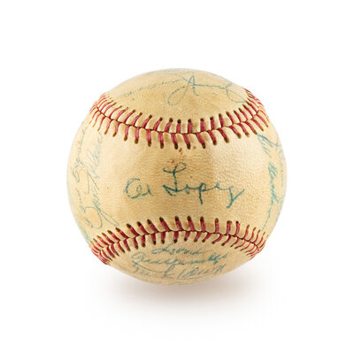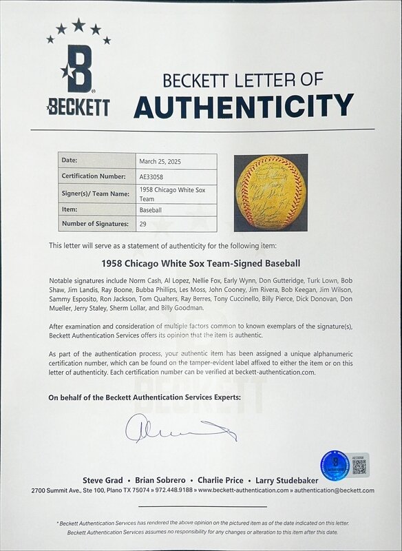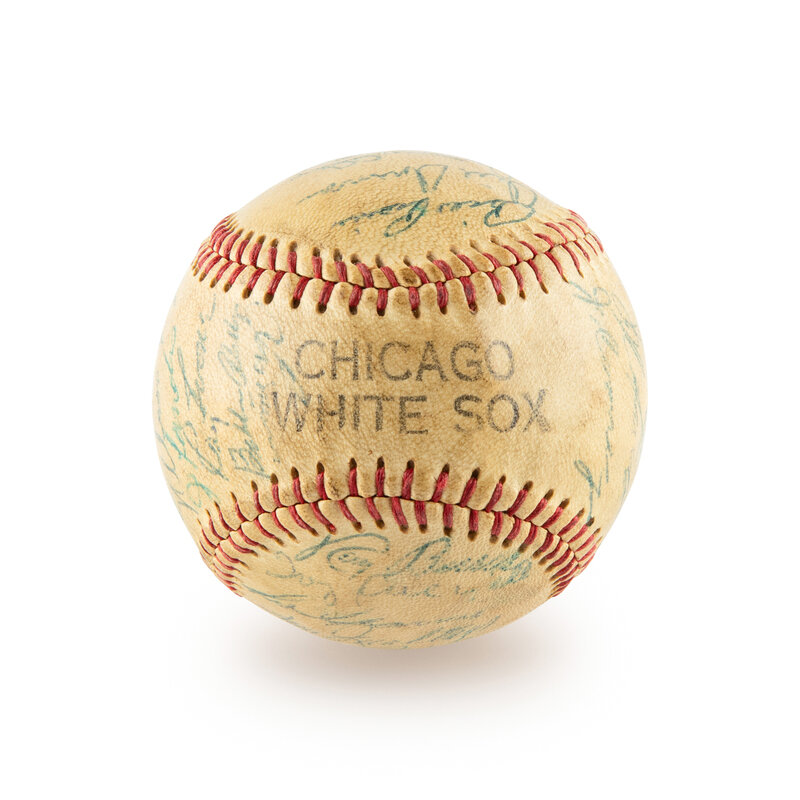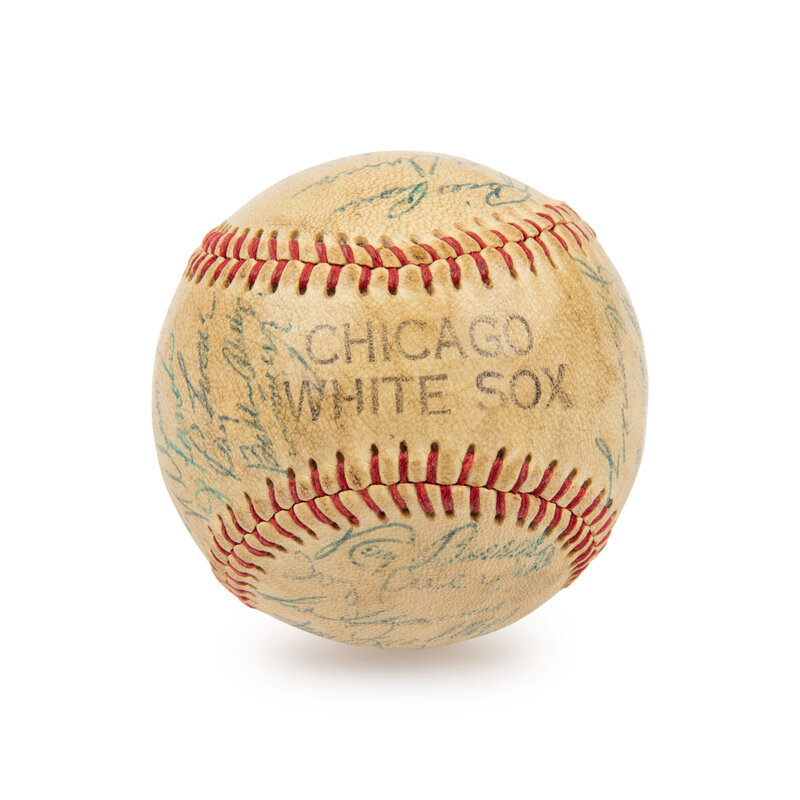 Comprising signatures of Norm Cash, Al Lopez, Nellie Fox, Early Wynn, Don Gutteridge, Turk Lown, Bob Shaw, Jim Landis, Ray Boone, Bubba Phillips, Les Moss, John Cooney, Jim Rivera, Bob Keegan, Jim Wilson, Sammy Esposito, Ron Jackson, Tom Qualters, Ray Berres, Tony Cuccinello, Billy Pierce, Dick Donovan, Don Mueller, Jerry Staley, Sherm Lollar and Billy Goodman.