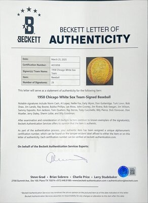 A 1958 Chicago White Sox Team Signed Autograph Baseball Including Nellie Fox (Beckett Authentication Services) - 29 Signatures