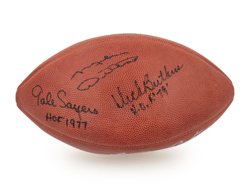 Official Wilson NFL game ball comprising signatures of Walter Payton, Mike Ditka, Dick Butkus, Gale Sayers and Mike Singletary.
