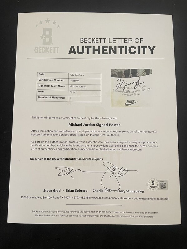 A Michael Jordan Signed Autograph Original Nike Wings Poster (Beckett Authentication Services Letter)