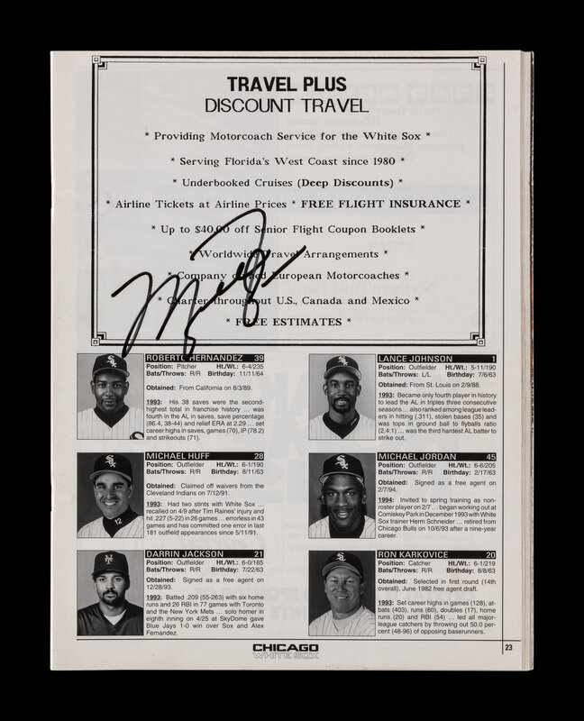 Signature acquired in person from Jordan at 1994 Chicago White Sox Spring Training in Sarasota, Florida.