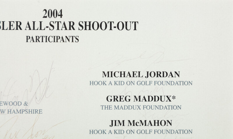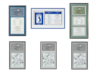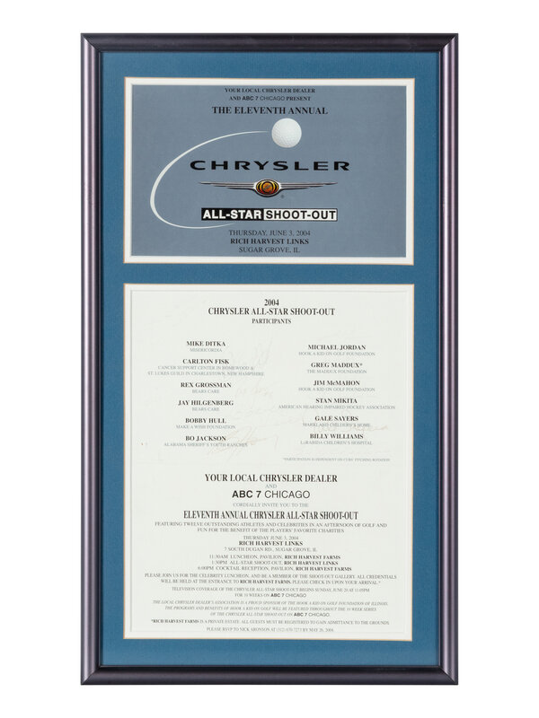A Collection of Six Framed Chrysler Golf Shootout Signed Autograph Invitations Including Michael Jordan
