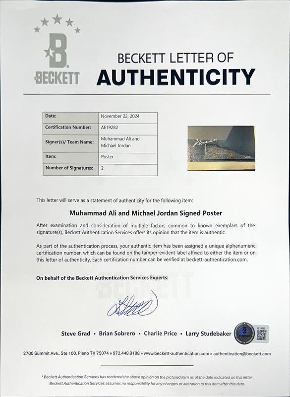 A Michael Jordan and Muhammad Ali Dual Signed Autograph Display (Beckett Authentication Services)