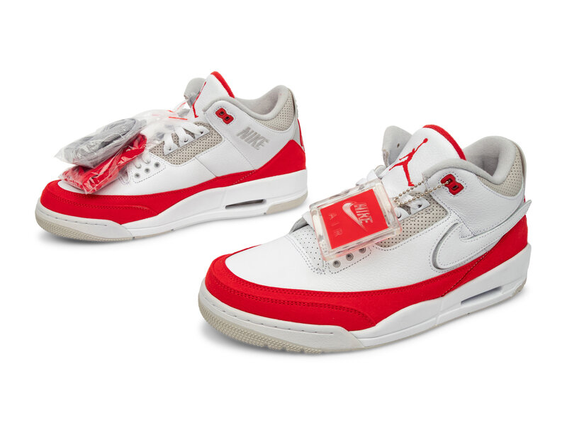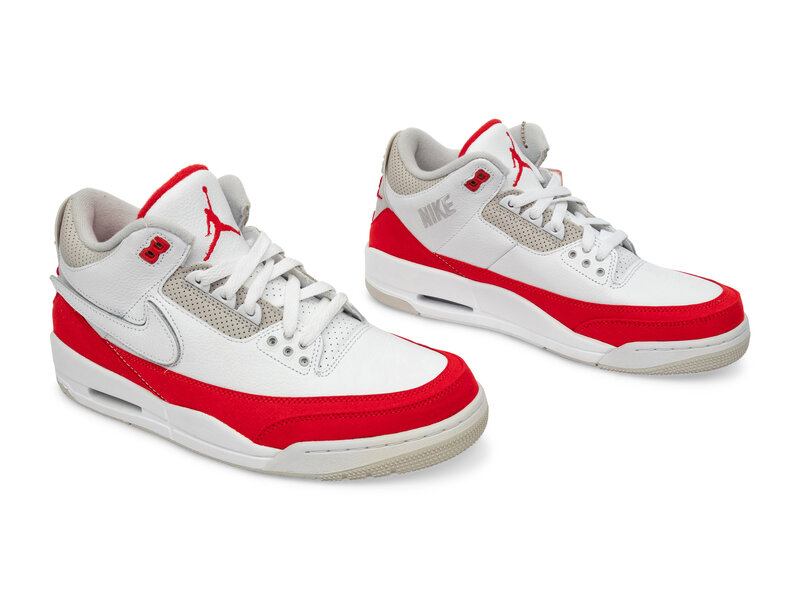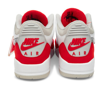 Released on 3/30/19, this special edition Jordan 3 pays tribute to Tinker Hatfield’s original design sketch, blending the Jordan 3 silhouette with elements of the Air Max 1. Featuring a white leather upper with University Red suede overlays and a removable Swoosh, it’s a bold fusion of two iconic Nike models. Tinker Hatfield’s signature is stitched on the inside of the tongue, adding a personal touch.