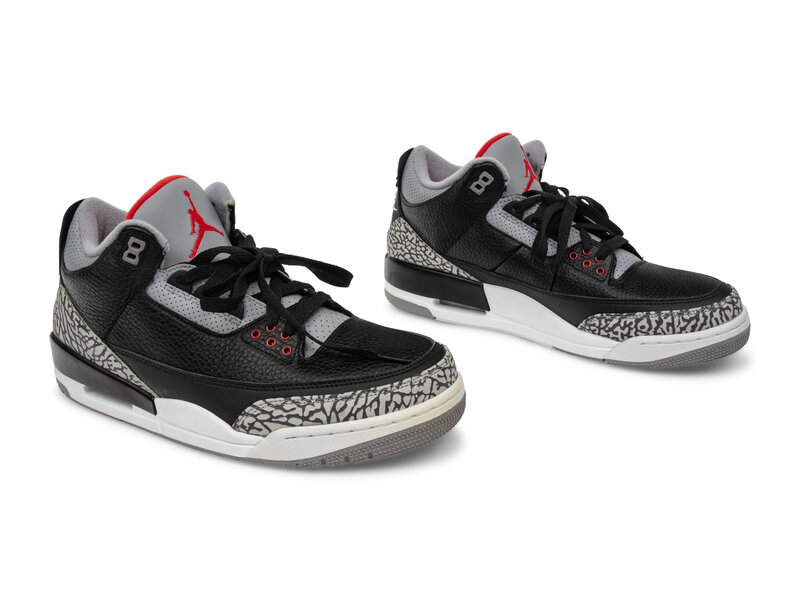 Released on 2/17/18, the "Black Cement" Jordan 3 is a true Jordan classic that marks the return of the iconic OG design with "Nike Air" branding on the heel. It features a black tumbled leather upper, signature elephant print overlays, and Fire Red accents, staying faithful to the original 1988 release that helped define Jordan Brand history.