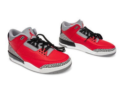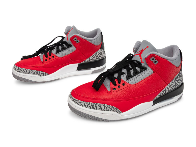 Released during NBA All-Star Weekend 2020, the "Unite" Jordan 3 features a bold red tumbled leather upper with classic elephant print overlays, black and grey accents, and a white midsole. Celebrating unity through sport, this standout colorway adds a fresh, energetic twist to the iconic silhouette.