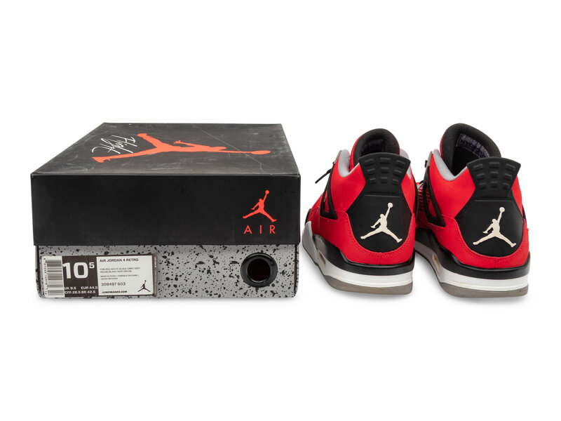 Released 7/13/13, the Jordan 4 Retro “Toro Bravo” showcases a bold Fire Red nubuck upper contrasted with black mesh, wings, and midsoles. Cement Grey accents on the eyelets, tongue tag, and outsole, plus white midsoles with visible Air units, round out the design—offering a striking nod to the “Raging Bull” theme.