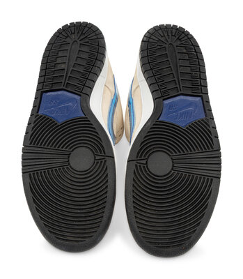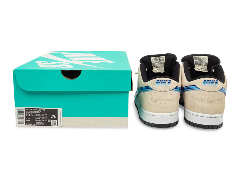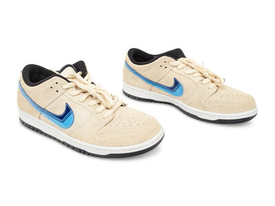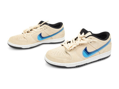Released 1/24/20, the Nike SB Dunk Low "Truck It" draws inspiration from 1970s road trip aesthetics. The sneaker features a tan suede upper complemented by a vibrant blue and navy striped Swoosh, reminiscent of retro RV graphics. Additional details include a cactus graphic on the tongue and a desert-themed insole, enhancing its travel-inspired theme. A white midsole and black outsole complete the design, offering both style and functionality for skaters.