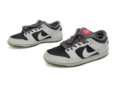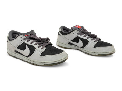 Released on 7/8/15, the Atlas x Nike SB Dunk Low "Wolf Grey" draws inspiration from vintage camera bodies. The upper features a mix of Wolf Grey and black leather, accented with Challenge Red on the tongue tag. Notably, the insoles and outsoles showcase the work of renowned Bay Area photographers Mark Whiteley and Joe Brook, celebrating skateboarding culture through photography.