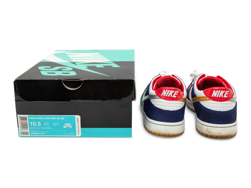 Released on February 11, 2016, the Nike SB Dunk Low Pro "Ishod Wair QS" is a tribute to the skater's favorite luxury car. The sneaker features a premium leather and suede upper in Deep Royal Blue, accented with gold and silver patent leather Swooshes and a patent leather heel panel. A mesh tongue displays Ishod Wair’s name, while the translucent grey outsole adds a sleek finish. Designed for skate performance, it includes an inner sleeve for foot lockdown and a Zoom Air heel unit for cushioning.