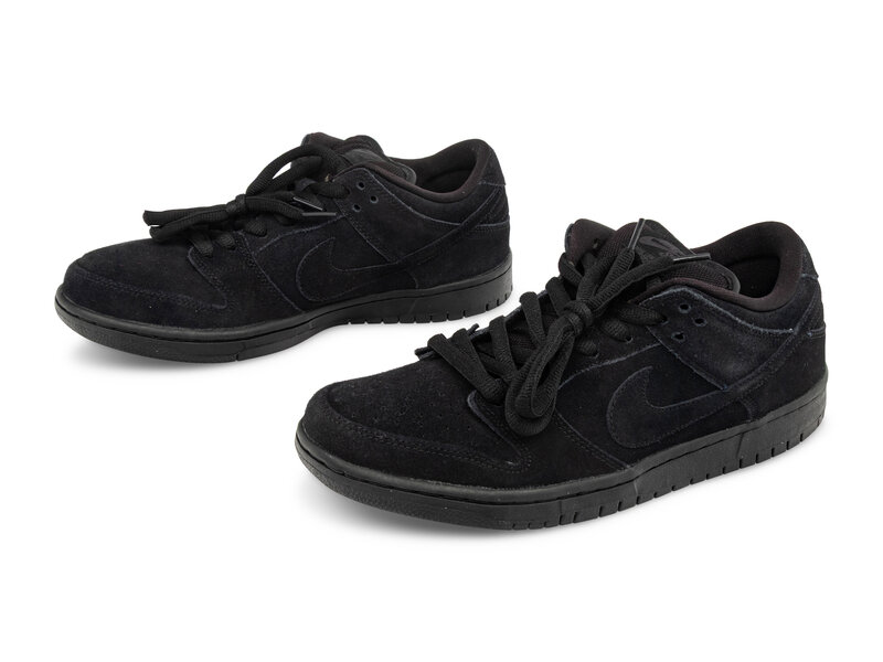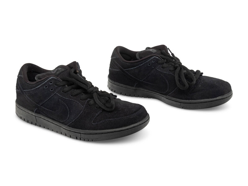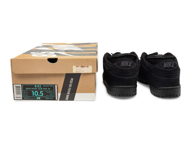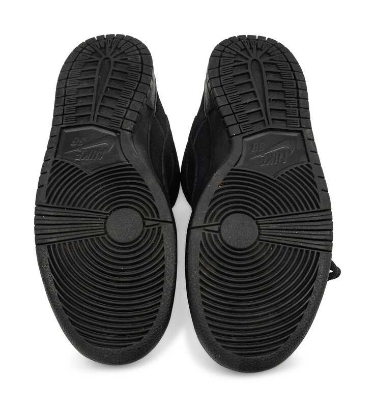 Released in 2011, the Nike SB Dunk Low Pro "Blackout" features a sleek, all-black suede upper complemented by tonal stitching and a matte black Swoosh. The monochromatic design is accented with subtle anthracite details, including the embroidered Nike branding on the tongue and heel. This minimalist colorway offers a versatile and understated look, making it a favorite among sneaker enthusiasts.