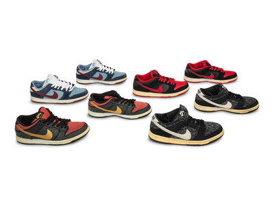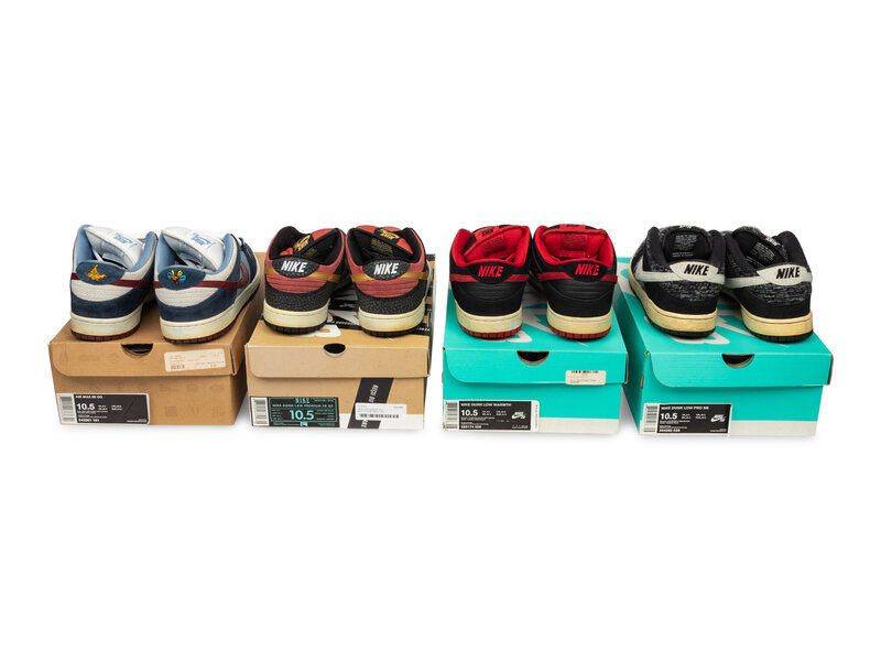This four-pair collection highlights standout Nike SB Dunk Low Premium releases, each showcasing unique collaborations and design inspirations. The FTC x Dunk Low Premium ‘Finally’ combines premium materials with bold color blocking for a sleek, modern aesthetic. The Dunk Low Premium SB QS ‘Walk of Fame’ delivers a celebratory design with striking details and vibrant accents. The Dunk Low Pro SB Jpack “Bred” pays homage to one of the most iconic Nike colorways, blending black and red with classic SB styling. Finally, the Dunk Low SB ‘Warmth’ features rich autumnal tones and textures, creating a cozy yet eye-catching look. Together, these pairs demonstrate the versatility and cultural significance of the SB Dunk Low line.