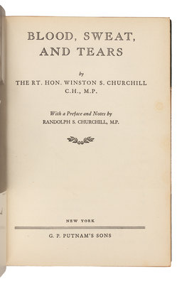 CHURCHILL, Winston Spencer (1874-1965). Blood, Sweat and Tears. New York: G. P. Putnam's Sons, 1941.