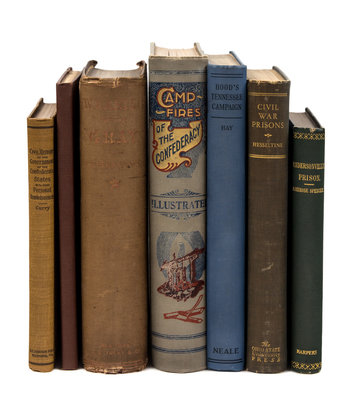 SPENCER, Ambrose Narrative of Andersonville New York: Harper & Brothers, Publishers, 1866. -- COOKE, John Esten. Wearing of the Gray; Being Personal Portraits, Scenes and Adventures of the War. New York: E.B. Treat & Co., 1867. -- LABREE, Ben, editor. Campfires of the Confederacy. Louisville: Courier-Journal Job Printing Company, 1897. -- CURRY, J.L.M. Civil History of the Government of the Confederate States with some Personal Reminiscences. Richmond, VA: B. F. Johnson Publishing Company, 1900. -- FAIRBACK, Henry (1839-1913). A Wanderer. Being A Brief Sketch of the Civil and Military Experiences of Henry Fairback. St. Louis: St. Louis Commercial Printing Co., 1912. PRESENTATION COPY SIGNED BY FAIRBACK, 1912. -- HAY, Thomas Robson. Hood's Tennessee Campaign. New York: Walter Neale, 1929. -- HESSELTINE, William Best. Civil War Prisons: A Study in War Psychology. Columbus, OH: The Ohio State University Press, 1930. -- Together, 7 works in 7 volumes, most first editions , all in original publisher's cloth, condition generally fine.