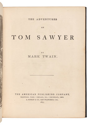 CLEMENS, Samuel Langhorne ("Mark Twain") (1835-1910) . The Adventures of Tom Sawyer. Hartford, et al: The American Publishing Company, 1877.