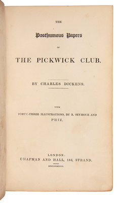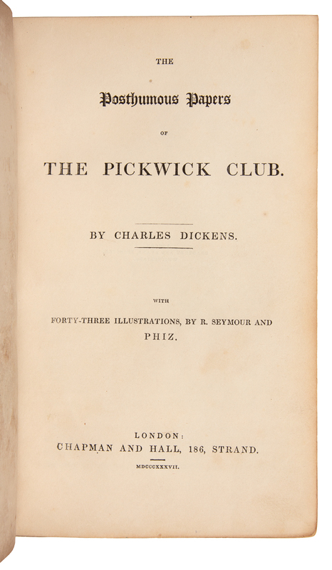 DICKENS, Charles (1812-1870). The Posthumous Papers of the Pickwick Club. London: Chapman and Hall, 1837.