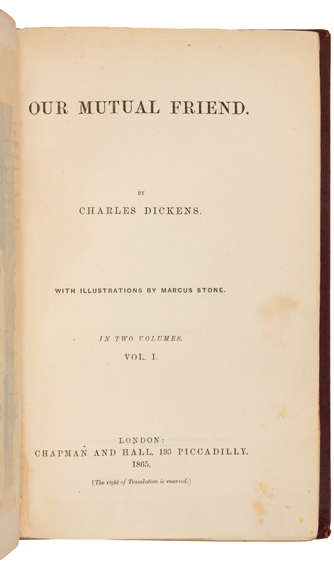 DICKENS, Charles (1812-1870). Our Mutual Friend. London: Chapman and Hall, 1865.
