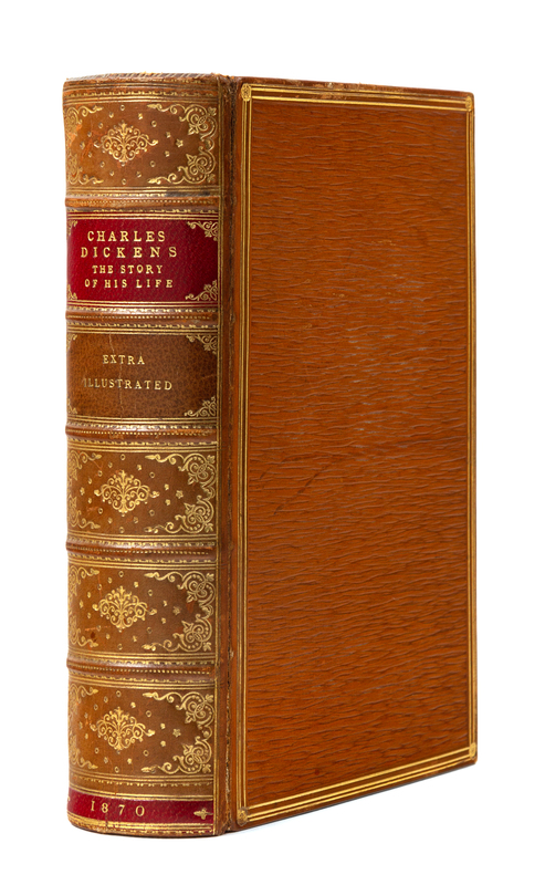 8vo (186 x 121 mm). EXTRA-ILLUSTRATED by the addition of over 60 portraits and engravings and 2 facsimiles. Tan calf gilt, center panel textured in a straight-grained pattern (upper joint just starting). Provenance: Edmund Ollier (1827-1886) English journalist (signature and annotations, see below).