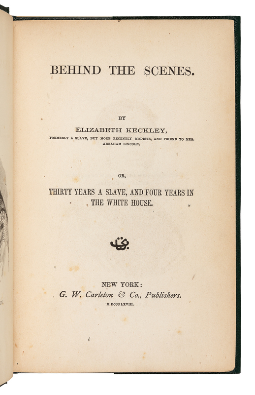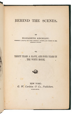 KECKLEY, Elizabeth (1818-1907). Behind the Scenes. Thirty Years a Slave and Four Years in the White House. New York: G. W. Carleton & Co., 1868.