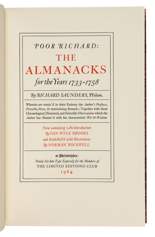 [LIMITED EDITIONS CLUB]. FRANKLIN, Benjamin (1706-1790). Poor Richard: The Almanacks for the Years 1733-1758. Philadelphia: The Limited Editions Club, 1964.