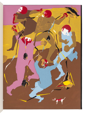 4to. Silk-screen prints by Jacob Lawrence. Black blind-stamped calf (some slight rubbing), slipcase.