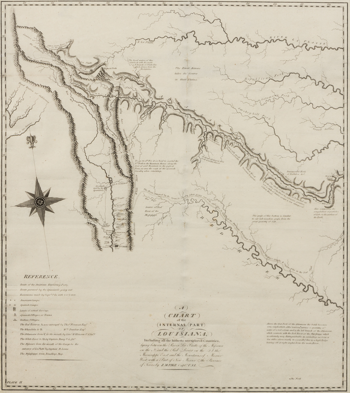 Printed for inclusion in Pike's landmark report of the Southwest, An Account of Expeditions to the Sources of the Mississippi, and Through the Western Parts of Louisiana, to the Sources of the Arkansaw, Kans, La Platte, and Pierre Jaun, Rivers... According to Wheat, this was one of "the first maps of this entire region to display knowledge derived from actual explorations....[a] milestone...in the mapping of the American West." Wheat Transmississippi West 298.