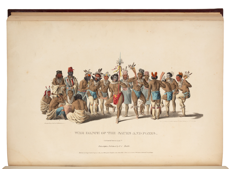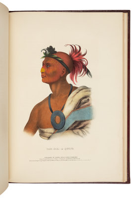 Mixed edition of "the grandest color plate book issued in the United States up to the time of publication" (Reese). Plates with imprints including: E. C. Biddle, Key & Biddle, F. W. Greenough, J. T. Bowen, and Daniel Rice & James G. Clark. "Its long and checkered publication history spanned twelve years and involved multiple lithographers (mainly Peter S. Duval and James T. Bowen) and publishers, but the final product is one of the most distinctive and important books in Americana. Almost all the plates are portraits of individual Native Americans, the majority painted from life by Charles Bird King (who also reworked the less skilful portraits of James Otto Lewis)" (Reese). Howes M129; Reese 24; Sabin 43410a.