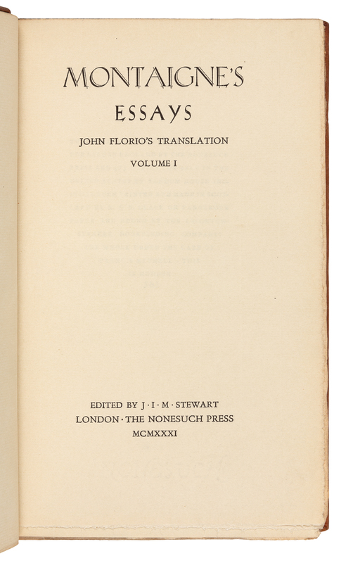 [NONESUCH PRESS]. MONTAIGNE, Michel Eyquem de (1533-1592). -- FLORIO, John (1553-1625), translator. Montaigne's Essays. London: The Nonesuch Press, 1931.