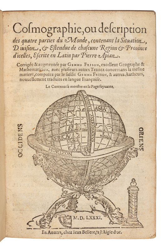 APIANUS, Petrus (1495-1522). Cosmographie, ou description des quatre parties du Monde... Corrigee & augmentee par Gemma Frison. Antwerp: Jean Bellere, 1581.