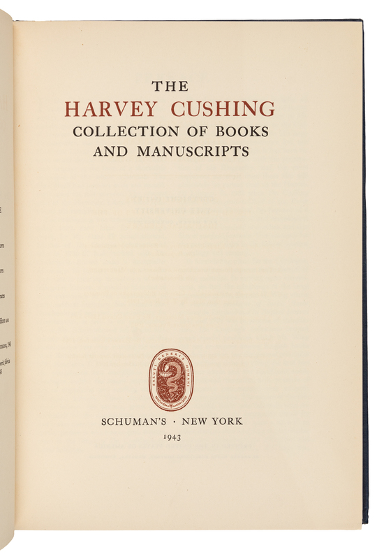 CUSHING, Harvey (1869-1939). The Harvey Cushing Collection of Books and Manuscripts. New York, 1943.