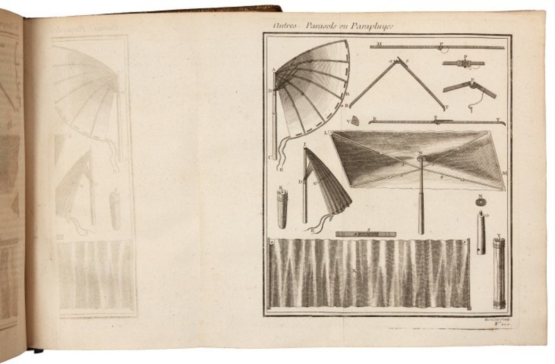 Volumes I-VI (of 7), 4to (245 x 186mm). Half-titles, titles in red and black with varying culs-de-lampe. 431 folding engraved plates by Herisset and Dheulland including bis plates 105, 177 and 329, one plate jointly numbered 197 & 198. (Some occasional marginal spotting and soiling.) Contemporary mottled French calf gilt, covers with unidentified gilt arms, edges gilt (some wear to spine ends, joints and extremities). Provenance: Harrison D. Horblit (bookplates).